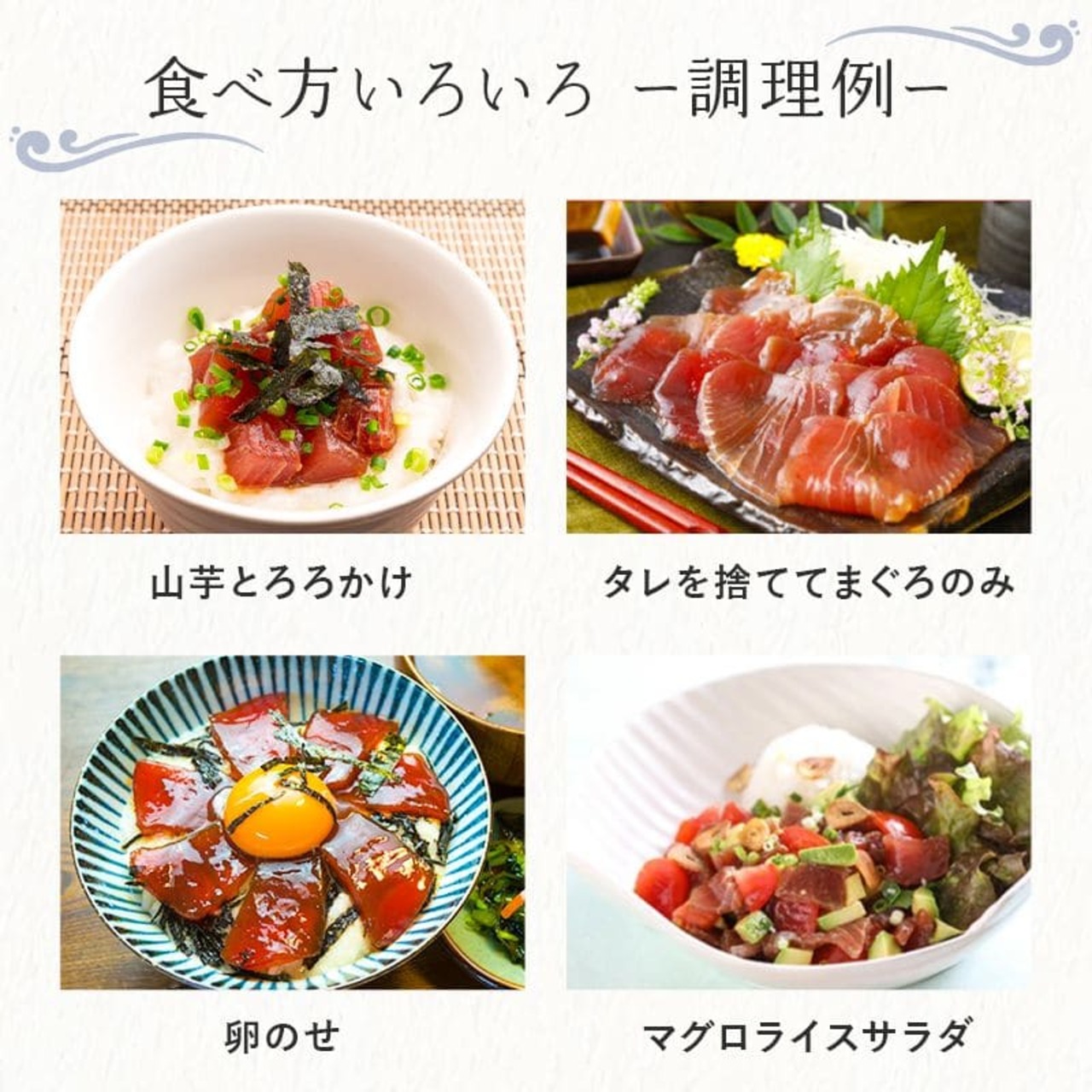 原材料:めばちまぐろ(太平洋)、醤油(大豆:遺伝子組み換えの混入を防ぐため分別)、砂糖、かつお節だし、発酵調味料